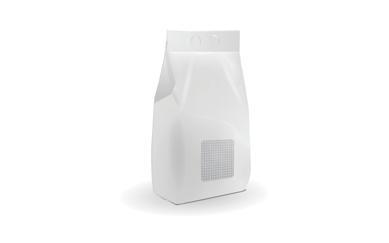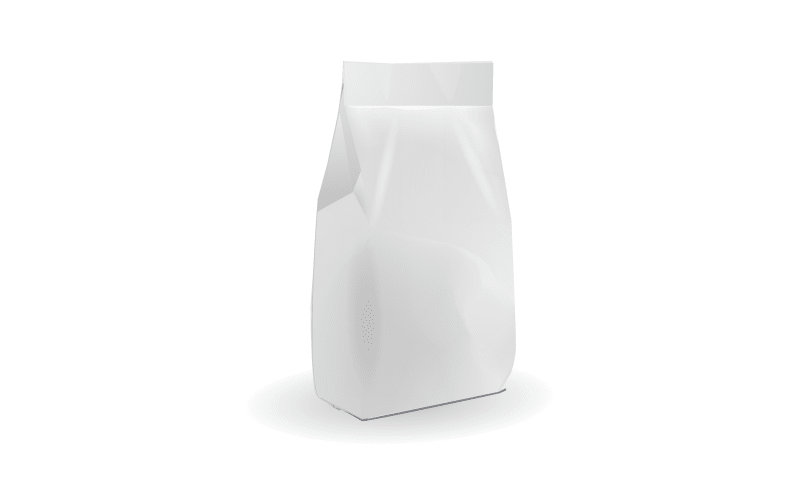Вертикальный пакет с прямоугольным дном, продольным швом на задней части пакета по центру или продольным швом в боковой части. Пакет может быть оснащен различными системами легкого открывания и повторного закрытия. Пакеты данного типа (Block bottom) формируются на круглых, квадратных, прямоугольных формирователях пакетов вертикальной упаковочной машины.